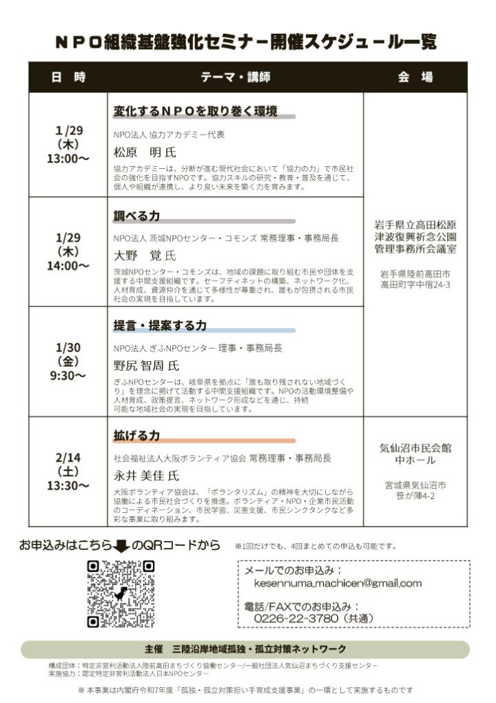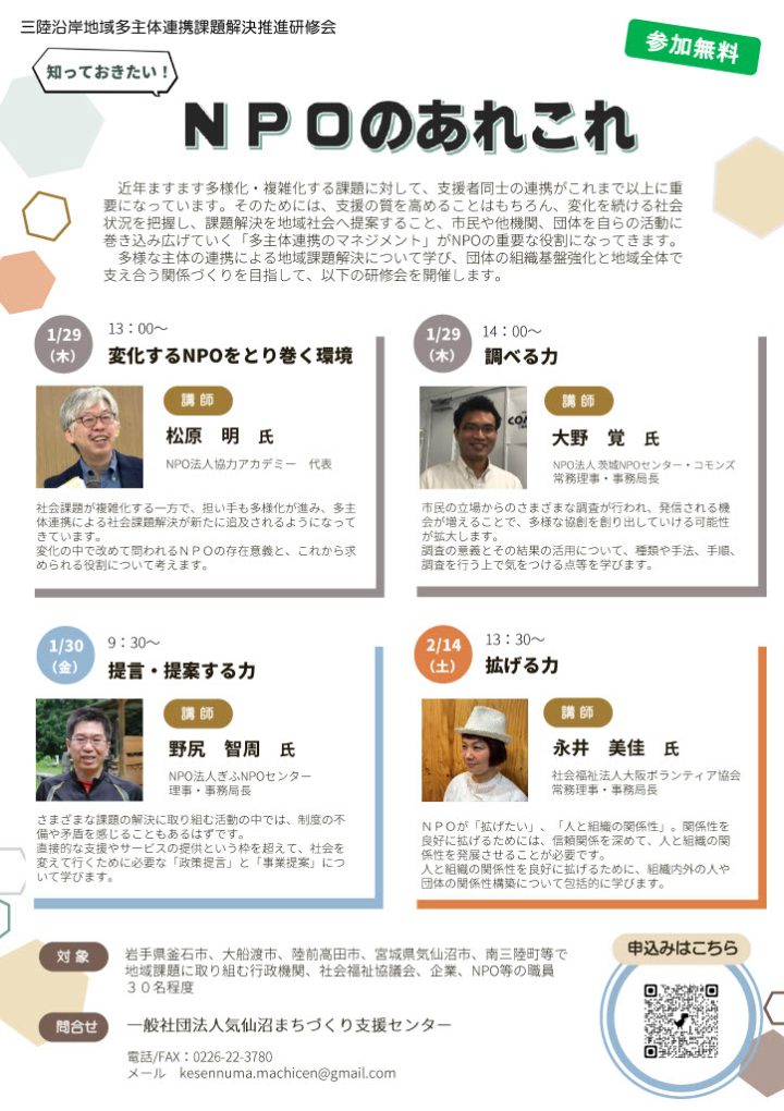 「知っておきたいNPOのあれこれ~組織基盤強化研修会~」まもなく開催!