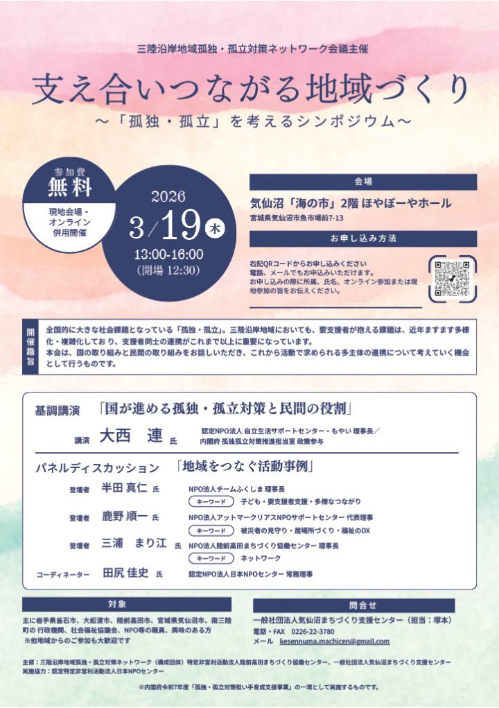 主催:三陸沿岸地域孤独・孤立対策ネットワーク